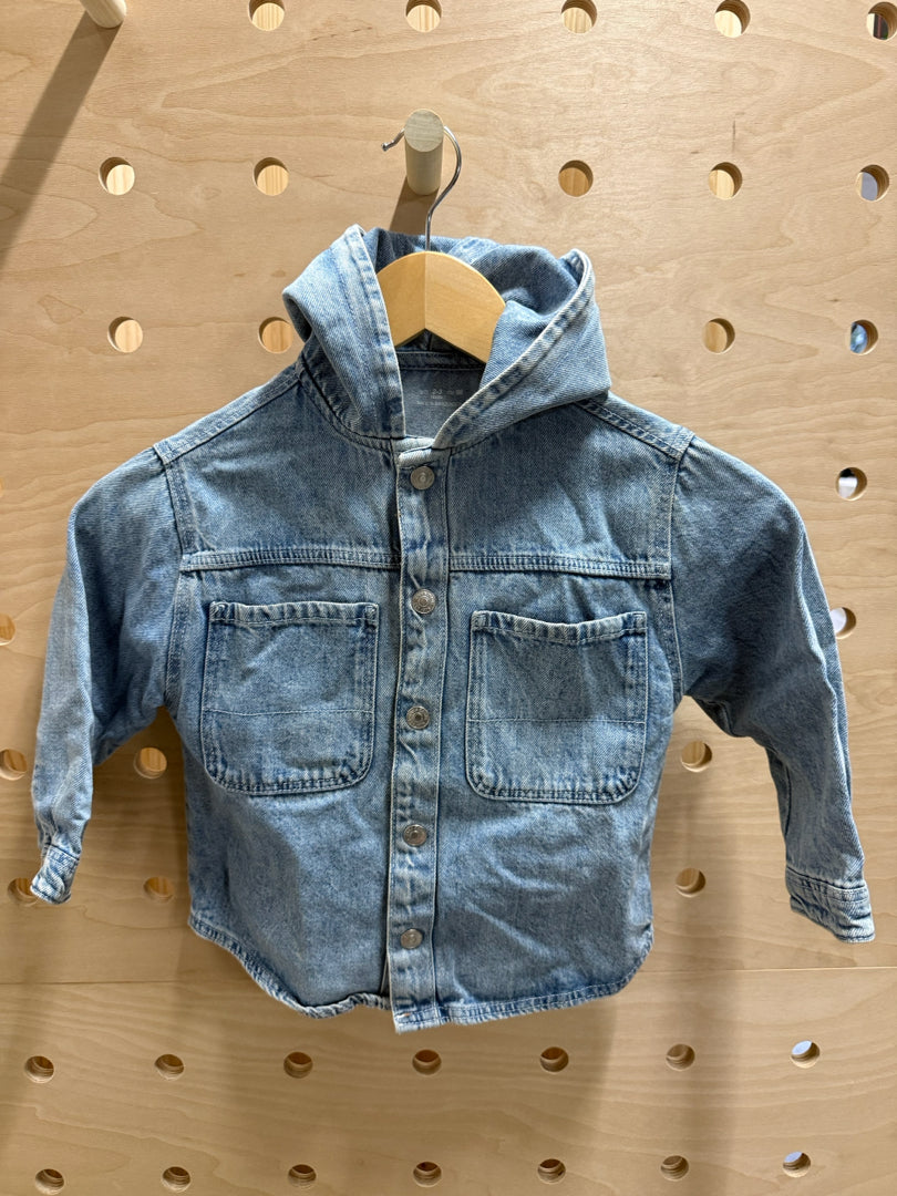 hooded snap button soft denim shirt